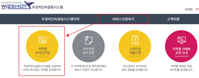 ※ 위즈넷 주정차 단속 알림 시스템 지역별 온라인 신청안내에서 확인