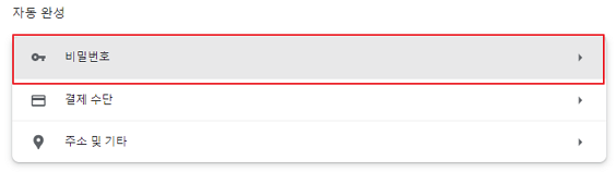 3. 자동완성 페이지에서 맨 위에 "비밀번호"를 클릭합니다.