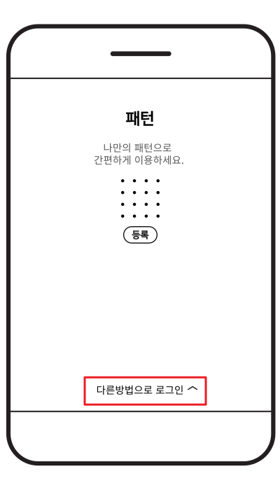 7. 만약 바로 보이는 로그인 인증 방식 설정 창에서 없는 지문이나 아이디/비밀번호 로그인 방식을 선택하기 위해서는 패턴이나 간편 비밀번호 항목에 들어가서 화면 하단 [다른방법으로 로그인] 부분을 터치하면 좀 더 다양한 로그인 방법 선택사항을 확인할 수 있습니다.