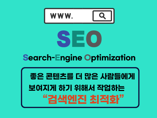 SEO는 영어로 Search-Engine Optimization로 간단하게 말하면 좋은 콘텐츠를 더 많은 사람들에게 보여지게 하기 위해서 작업하는 “검색엔진 최적화”라고 생각할 수 있습니다.