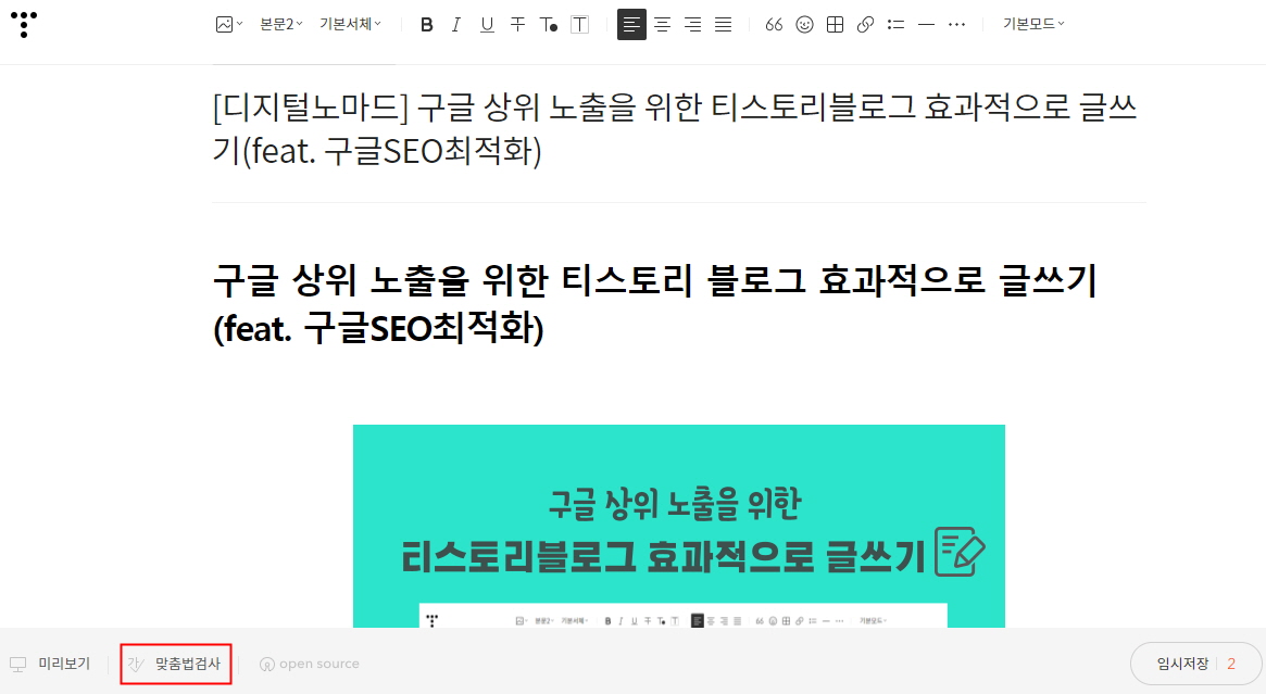 9. 글 작성 완료 후 맞춤법 검사와 미리보기 체크.