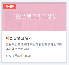 4) 이후 이전 발행 글 링크 삽입 상단에 사용 중이라는 빨간 박스가 뜨면 적용은 완료된 것입니다.
