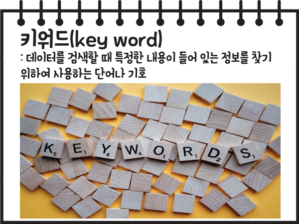 키워드(key word)란 사전적으로는 "데이터를 검색할 때 특정한 내용이 들어 있는 정보를 찾기 위하여 사용하는 단어나 기호"를 말합니다. 키워드는 검색 중심의 블로그라는 웹 형태에서 정말 중요한 요소 중의 하나입니다.