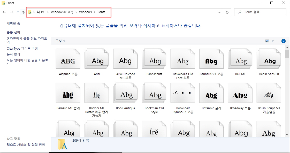 7. 만약 여러 개의 글꼴을 한꺼번에 설치 하고자 한다면 설치할 글꼴 파일을 모두 선택한 후에, 윈도우 탐색기에서 'Windows(C:)-> Windows->Fonts' 의 파일을 열어 그곳에 모두 선택한 글꼴 파일을 드래그해서 놓으면 설치가 진행됩니다.