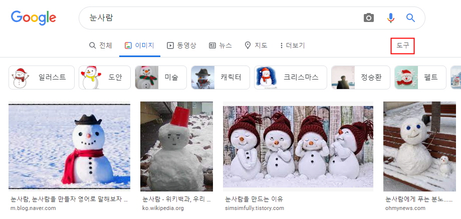 3. 검색된 이미지가 나오면 상단 검색창 오른쪽 부분에 “도구”를 클릭합니다.