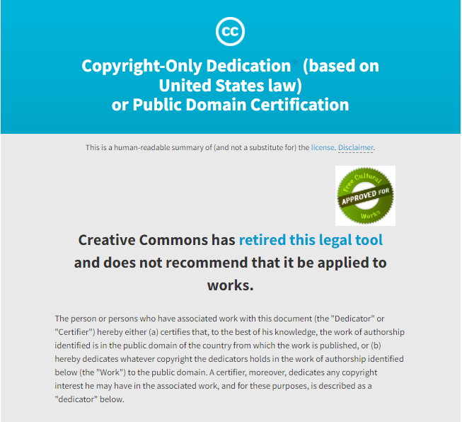 - CC0(CCZero)는 저작자가 본인의 저작권을 포기하였거나, 저작권이 소멸되었기 때문에 사용자가 저작물을 조건 없이 무료로 사용하는 것을 허용한 표기로, 저작물을 조건 없이 이용할 수 있으며 편집이나 상업적으로도 이용이 가능한 표시입니다.즉 저작물에 조건이 없는 경우를 CC0(CCZero) 즉 "퍼블릭 도메인"이라고 표기합니다.